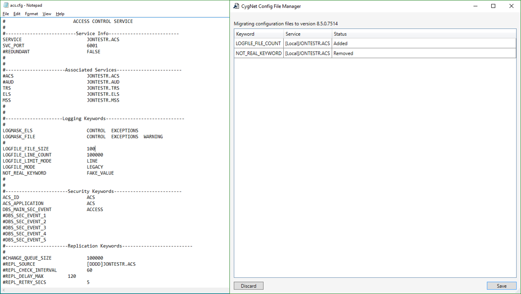 Next, we will talk about a feature that existed behind the scenes in Config File Updater, file migration. Migration is the process of adding new keywords and removing old keywords from a configuration file to match the current CygNet version. This happened every time a file was changed in the old utility. In the new tool, however, migration is from value modifying, so file values can be changed and saved without keywords being added or removed. Then, separately, migration can be selected to ensure important keywords are present.